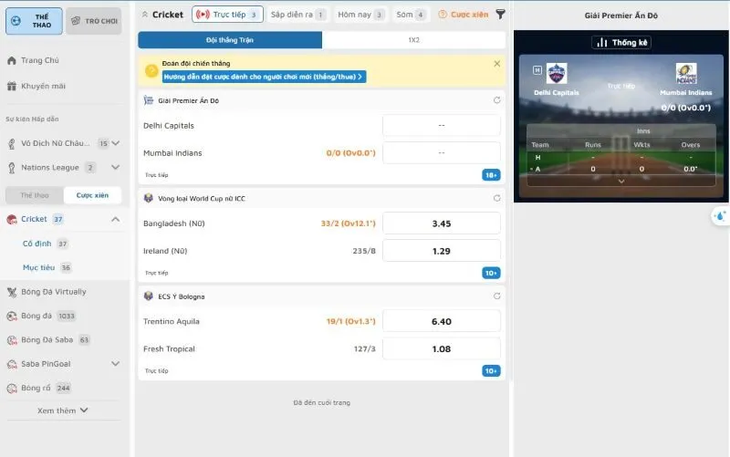 - Theo dõi các giải đấu quy mô quốc tế với tỷ lệ cược hấp dẫn.